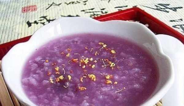 2.紫薯桂花粥:把番薯去皮切成塊狀,用大火把番薯煮開後,把紫米和薏米倒入砂鍋加水大火煮開,再加大米和紫薯,熬煮至軟爛加糖桂花和紅棗即可。有助於延緩衰老,潤腸排毒,健脾暖肝。