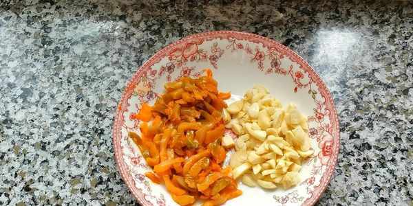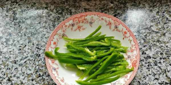 5,切點青椒絲,準備榨菜絲和蒜末。