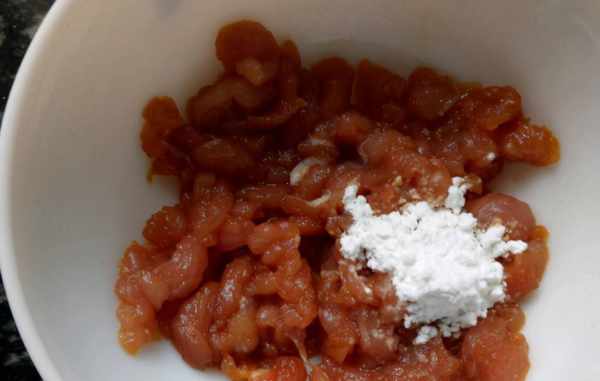 [所需菜品]:大米80克,梅條肉50克,生抽4克,鹽1克,料酒3克,淀粉小半勺,