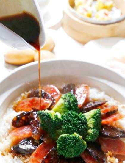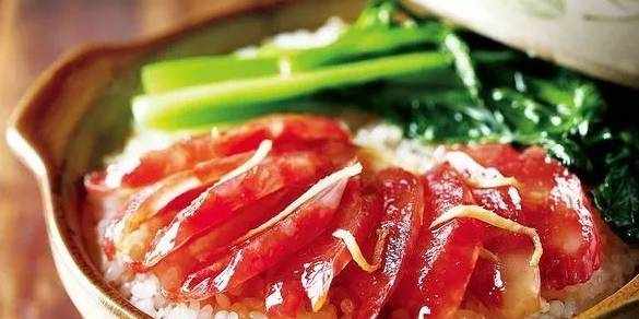 2把切好的臘腸、肝腸、臘肉及事先汆燙的綠花椰菜放回鍋內,以中火再煲2分鐘即可熄火。上桌後淋上以老抽、醬油及糖、1湯匙開水、麻油調成的醬汁拌勻即可。