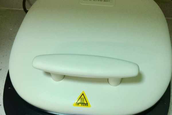 12、預熱好以後,在電餅鐺的上下兩面都刷上一層油,然後把面餅放進去,大概烤個五分鐘左右就可以瞭。