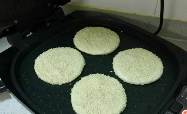 13、燒餅烙好以後取出來,接著用電餅鐺烤肉,把火調到最大,開始烤肉。