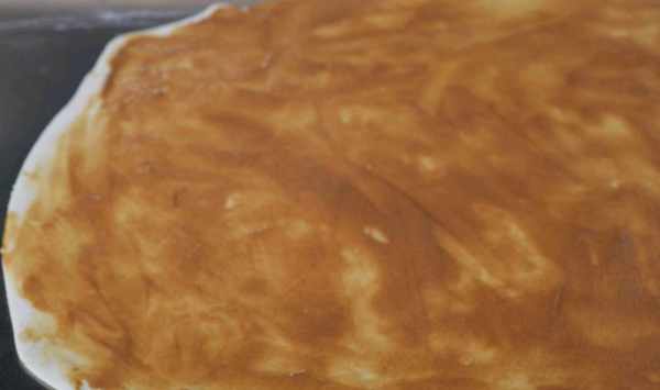 4、面餅上面均勻的塗上芝麻醬,塗抹均勻,處理好。