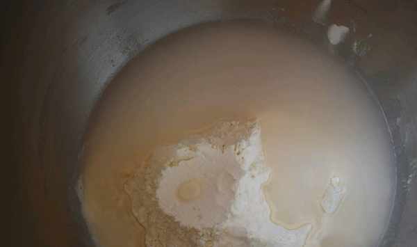 1、先把準備好的面粉和酵母混合均勻,攪拌均勻之後,少量多次地加入清水,揉成一個面團。