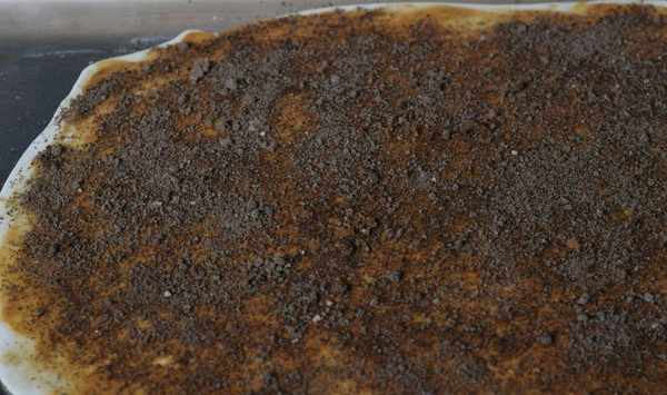 5、芝麻醬做好之後,再準備適量的紅糖,還是一樣的塗抹均勻就可以瞭,像是圖中這樣。