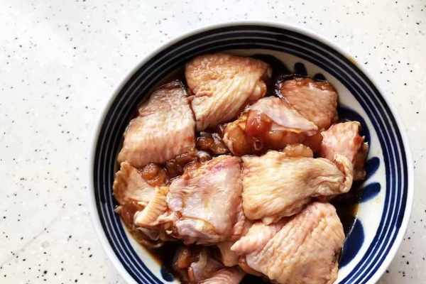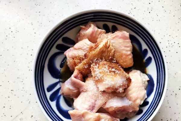 3、雞中翅也可不對半切開,可以在肉厚的部位割上兩刀,這樣便於入味,醃制的時間越長,雞翅就越入味,夏天大傢可以直接將醃制的雞翅放入冰箱中。