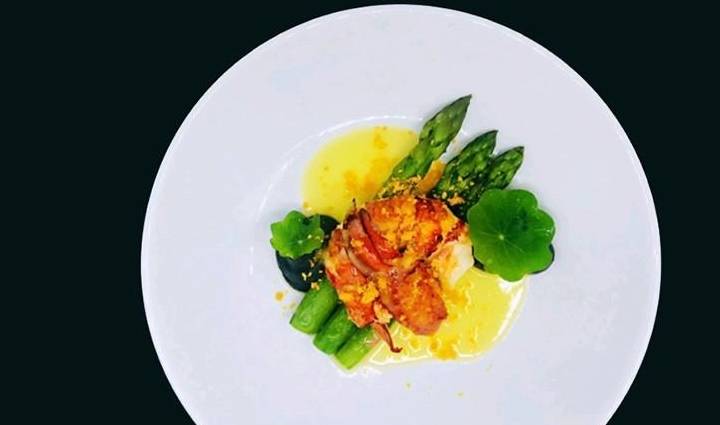 烤龍蝦配黃油蘆筍