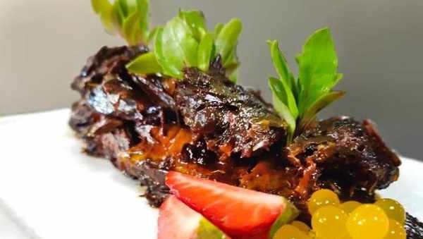 把米醋、生抽、水、冰糖混合調成汁水備用把小鯽魚處理幹凈,和汁水一起放入鍋中把汁水熬制到快要見底,把魚盛放在盤中,剩餘的汁液勾芡煮濃稠淋在魚上,用草莓等點綴即可