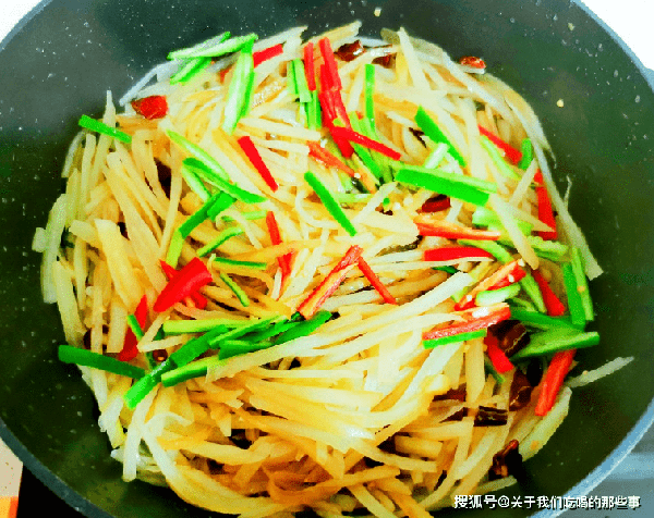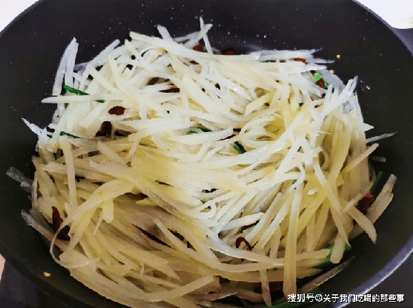 3、炒的時候要全程大火,快速出鍋,才能保證土豆絲的爽脆。要放2次醋,第一次放醋取“香味”,第二次放醋取“酸味”,這樣土豆絲才會酸、辣、香,還入味。