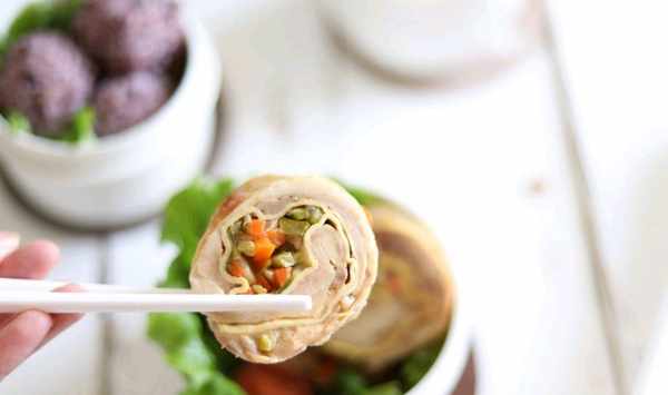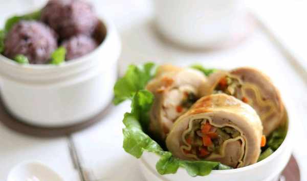 【菜品名稱】:雞腿豆皮雜蔬卷