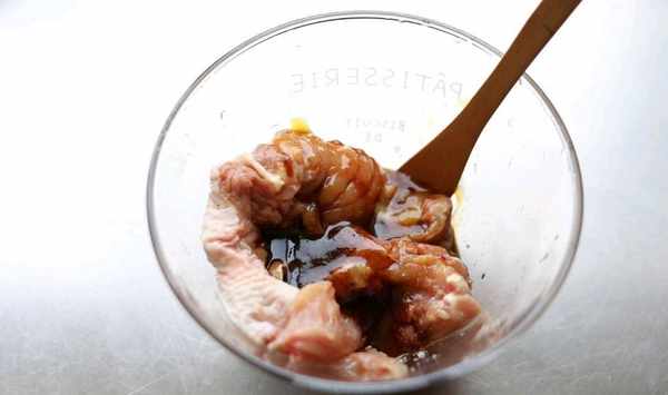4、碗中加入準備好的蠔油,鹽,蜂蜜,黑胡椒醬,最後攪拌均勻之後,放在準備好的冰箱裡面冷藏兩個小時讓雞腿充分醃制入味。期間別忘記保鮮膜,不然就會滿冰箱的異味。