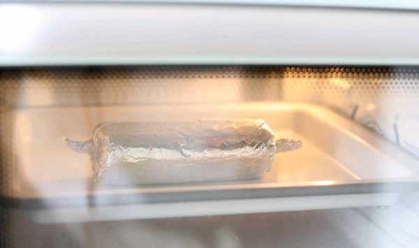 8、錫紙裹嚴,兩邊卷緊。這樣放到烤箱裡面烤制成熟。