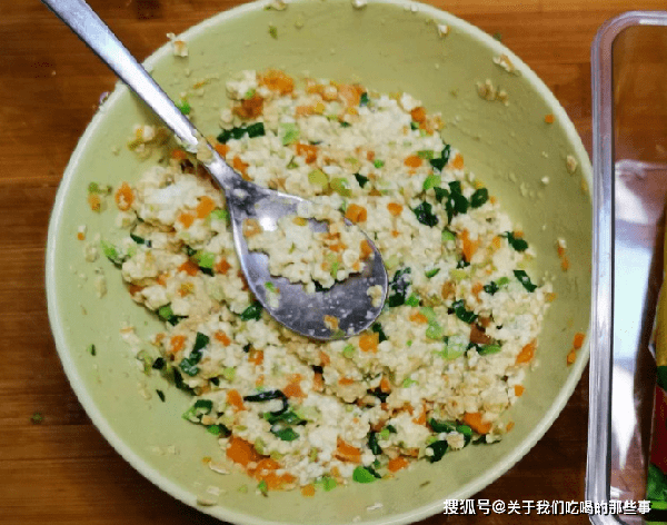 1、胡蘿卜去皮洗幹凈,先切成細絲,再用刀剁碎。豆腐洗幹凈,用手捏碎後放入盆中,加入胡蘿卜碎,蔥花,打入一個雞蛋,再放入食鹽、生抽、蠔油、花椒油,攪拌均勻。