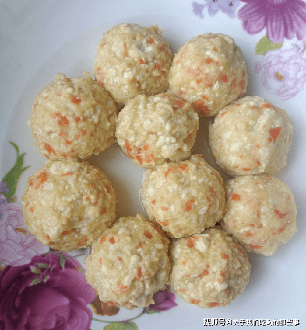 2、放入適量面粉增加粘度,攪拌均勻後用手搓成乒乓球大小的豆腐丸子。鍋裡倒入適量清水,燒開後放上蒸籠,然後放入豆腐丸子,大火蒸10分鐘。