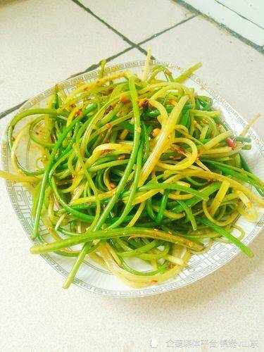 4,碼入盤子裡,醬油蘋果醋,鹽和花生油拌勻,放入蒜末,淋上醬即可。