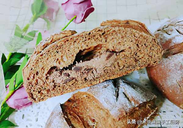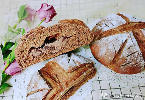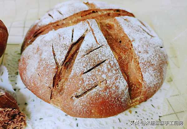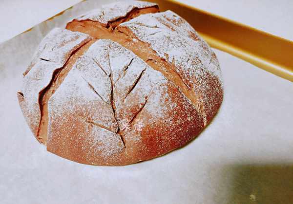 17.表面撒粉,割包,造型隨意。最好把表層包裹的那層面片割開,這樣烤完會更好看一點。