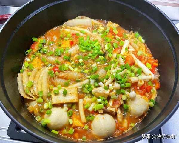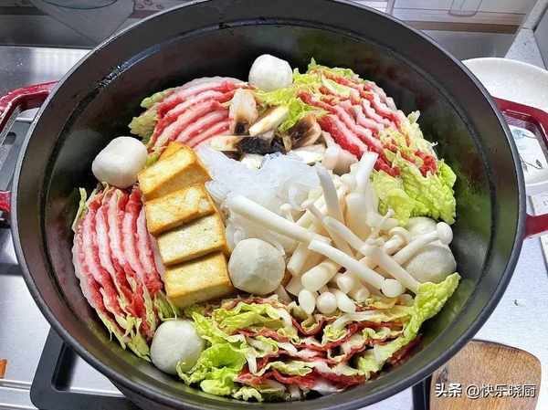 肥牛片,白菜,洋蔥,西紅柿,紅椒,蒜,小蔥,魚丸,魔芋塊,香菇,平菇,豆腐,鹽,雞精,蠔油,生抽,香油,番茄醬,蒜蓉醬