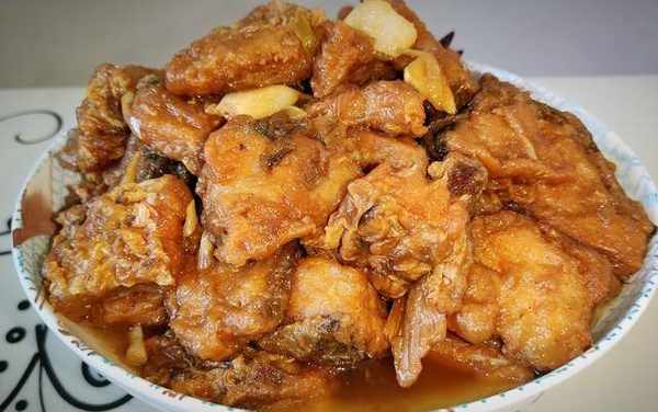 4.將炒好的魚塊放入鍋裡輕輕煮幾分鐘,然後加入適量的鹽,大火煮開後轉小火慢慢收汁,至汁變稠,顏色呈紅棕色即可出鍋。