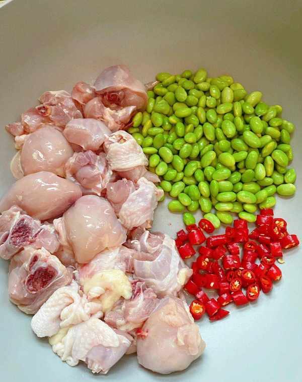 雞腿、蔥薑蒜、小米辣、毛豆。