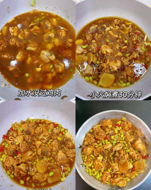 大火燒開後轉小火燜煮30分鐘,直到雞肉變得爛熟,口感更加入味,再大火收汁即可出鍋。