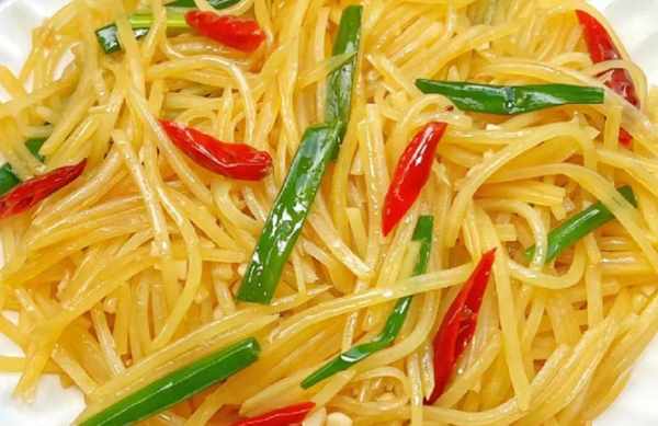可開胃消食,利水消腫。將土豆洗凈切絲,煮熟備用,蔥薑蒜切末,熱鍋涼油,爆香蔥薑蒜後加入醋、糖、鹽、辣椒粉翻炒,最後加入土豆絲拌勻即可。