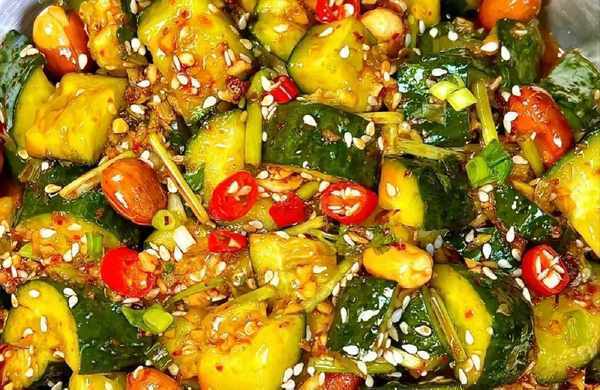 黃瓜和酸菜都是夏季常見的食材。這道菜爽口開胃,可以去除暑濕,消除身體疲勞。將黃瓜和酸菜切成小塊,加入適量的鹽,醃制幾小時即可。