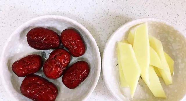 首先把帶皮的生薑洗感凈,選擇中間最大的那三片就足夠瞭,紅棗也要沖洗一下,去掉棗核再切碎。