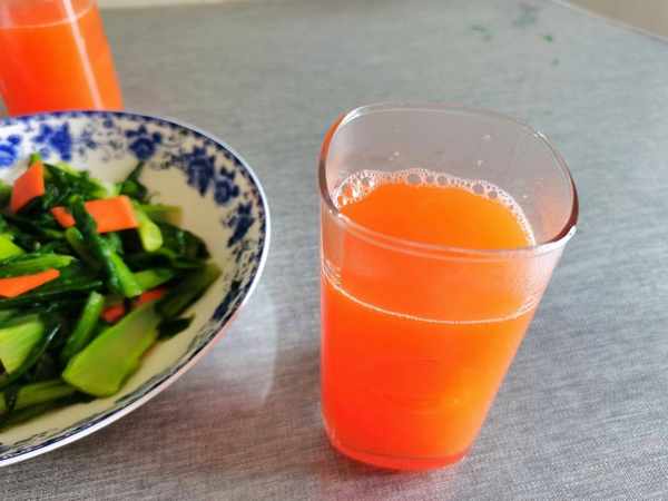 10、半根紅蘿卜切塊,放入料理機,倒入800毫升溫開水,30秒鐘就打成紅蘿卜汁,喝著清甜爽口。