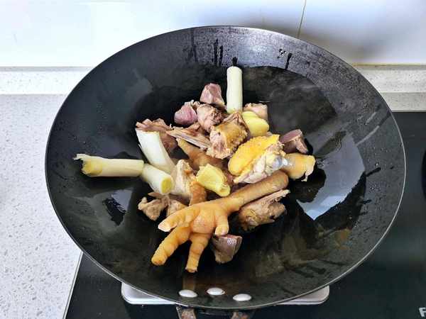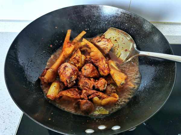再倒入沒過雞肉的開水,燒開後轉中火,慢燉至雞肉酥爛。