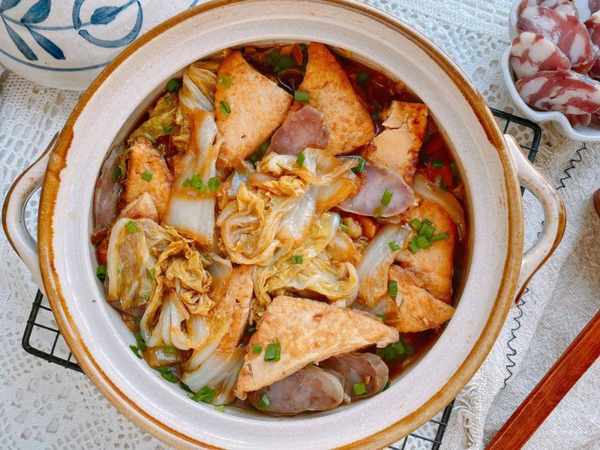 8 下入酸菜及芹菜絲煮開,小火再燜煮10分鐘。