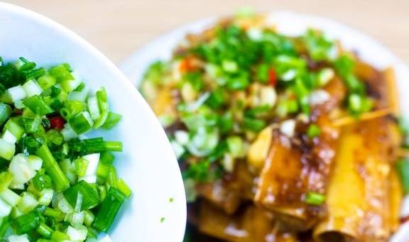 6:小蔥洗凈切碎,切成蔥花裝盤備用。