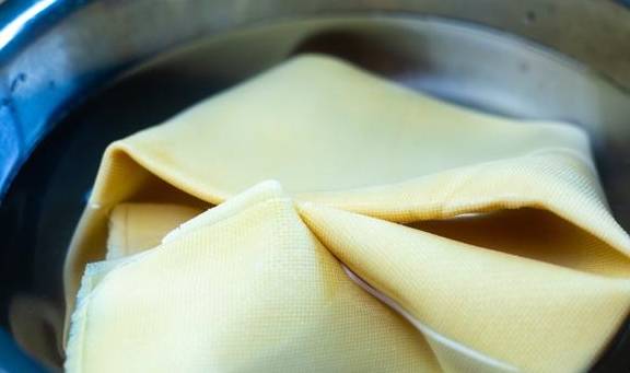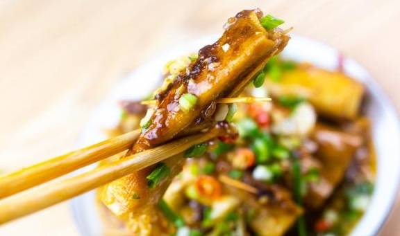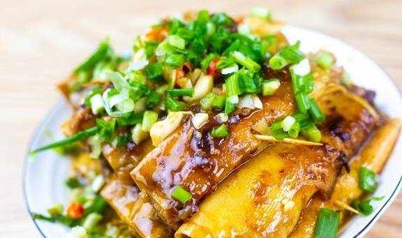 1:買來的豆皮清洗一遍,控幹水分備用。