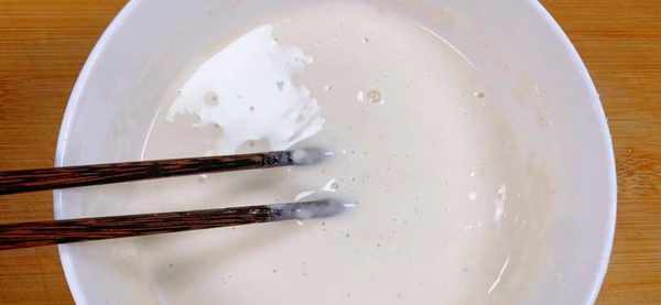3、接下來調一個面糊,油炸食物最新的的就是調一個稠稀適中的面糊,不管炸任何東西不要把面糊調的太稀或者是太稠。取一個幹凈無油的大碗,碗內倒入適量的幹面粉,水的量要根據面糊的稠稀來放,把面糊的稠度調制像酸奶差不多就可以,最後再放入少許的胡椒粉和鹽。