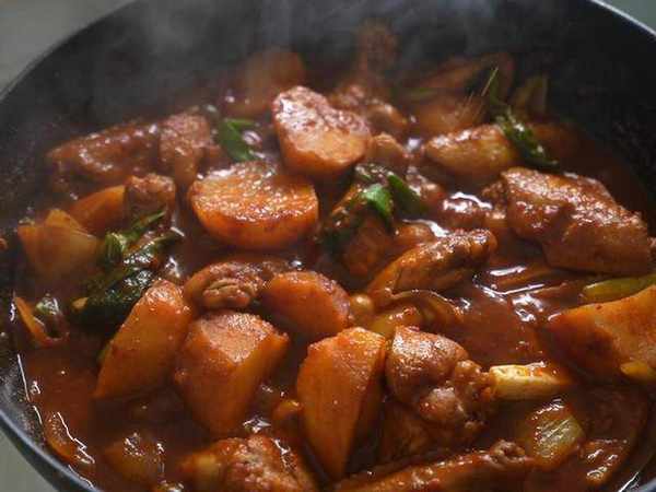 用整隻雞燉煮可以喂飽4~5人的韓式辣燉雞!辣燉雞的食譜很多種,今天我做的是加瞭很多馬鈴薯甜甜辣辣的辣燉雞,真的好好吃~