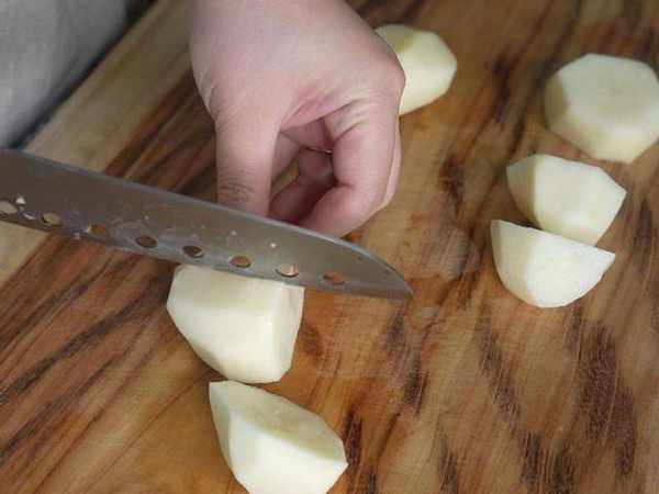 1、把馬鈴薯建議切得大塊一點,切太小塊煮完可能會粉碎消失,一顆洋蔥一樣切大片一點,蔥也大致切成一大段一大段。