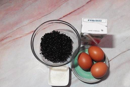 所需食材:黑米120克(請提前12小時泡發),雞蛋3個,純牛奶40克,白糖20克(隨個人口味自行調整);另外還需要30克無氣味食用油(我用的玉米油)。