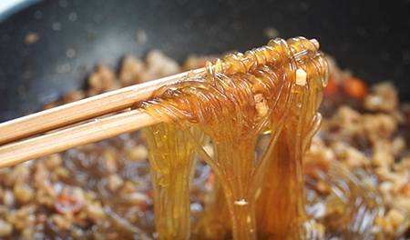 很多朋友在傢做這道菜的時候,容易粘鍋、黏成一團,那是因為粉絲沒有泡好、吸足水分;所以做這道肉末粉絲的時候,一定要將粉絲充分泡好,按照教給大傢泡粉絲的方法,就會泡好瞭。粉絲一般是選用綠豆粉絲,也可以換成其他種類的粉絲或者粉條,比如說:紅薯粉絲。豬肉也可以換成牛肉、羊肉等等。