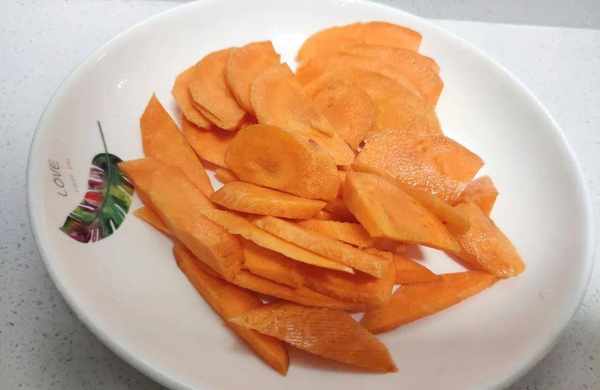 1.買回來的胡蘿卜用削皮刀去掉去掉其表皮,這樣可以減少農藥殘餘在表面。去皮後的胡蘿卜用清水洗凈,洗凈放在案板上切成細片,切好放在盆中備用。