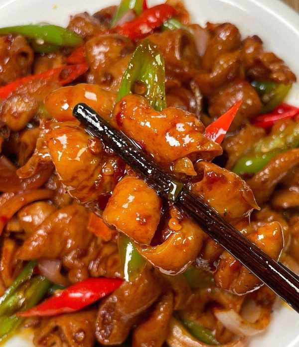 炒肥腸時一定要大火,翻炒均勻,這樣可以讓肥腸更加入味,口感更佳。