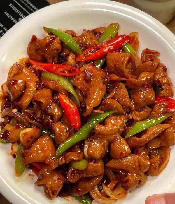 巨肥腸、青紅椒、洋蔥是這道美食的主要食材,其中巨肥腸是這道菜的關鍵食材,它含有豐富的蛋白質、脂肪和礦物質,是適合大眾食用的美食。