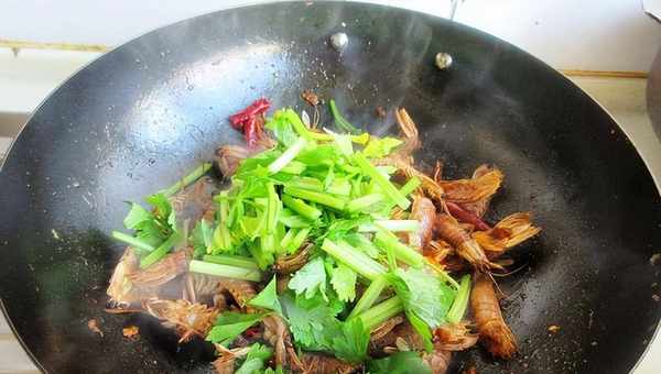 10、加芹菜段翻炒幾分鐘入味出芹菜的香味