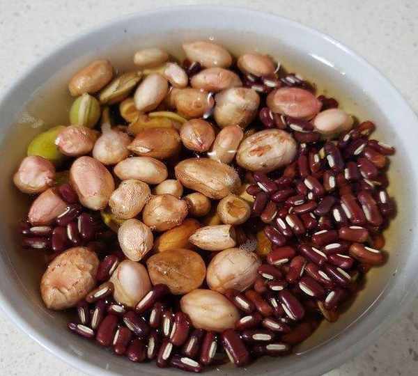 1花生和眉豆先洗凈,浸泡約15分鐘。