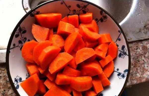 2、胡蘿卜去皮後切成小塊,山藥去皮切小段,玉米對半切開,然後切小塊;胡蘿卜。