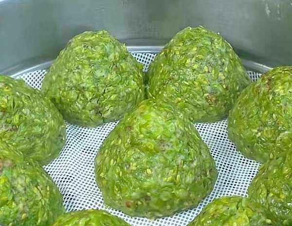 步驟一:榆錢擇洗幹凈,隻把綠色的葉子留下,放入大盆中,加一勺食鹽,一點食用堿,抓拌均勻。