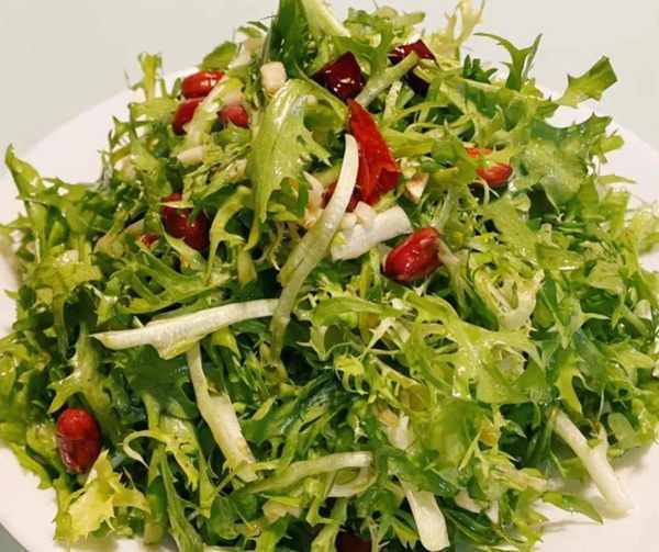 ①苦菊洗凈切段,蒜切末,小米辣切圈