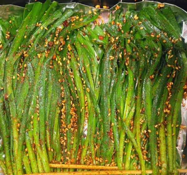 平時喜歡吃韭菜,王東特意點瞭一份五香韭菜,這個相對於其他的燒烤要好一點,沒有那麼辣,還好,王東很喜歡吃,隻是吃完之後要忍受辣椒帶來的後勁,哈哈。