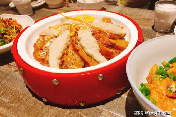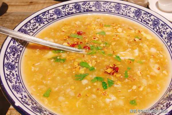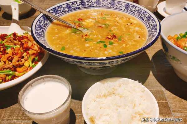 考慮到小孩子點瞭份蒸菜,原諒六廚記不清名字瞭,不過這種蛋皮、魚卷和年糕切片趁大紅豆蒸出來的口感香糯軟甜,挺適合孩子吃。這道菜在一般的湘菜館也少見。最後上來一個湯,說是本地特色。這個六廚可一定要求教方傢這叫啥湯瞭。賣相有點類似河南的油茶、胡辣湯、六廚故鄉的潵湯、豆沫,口味咸香滑嫩,有蛋花下芡粉,加花生碎和棗幹碎增香豐富口感,六廚喝瞭三碗,主子竟然喝瞭四碗半,哈哈,生生把一大盆湯給喝完瞭。