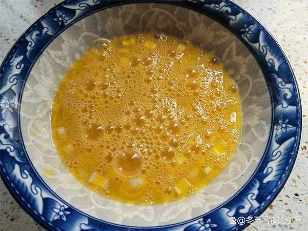 4.雞蛋磕入碗內,加入鹽和蔥花,攪打均勻。