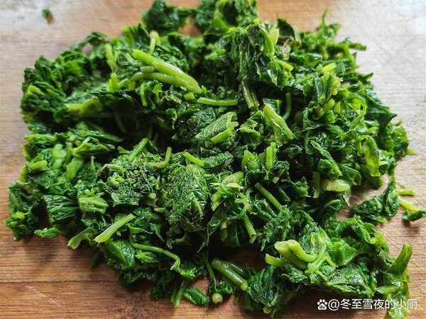 3.撈出後,馬上放到冷水中投涼,撈出,攥下水份,再把刺五加切碎。