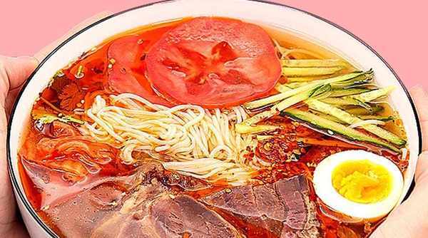 我比較喜歡在冷面裡搭配上青瓜絲、西紅柿、牛肉片、水煮蛋、辣白菜一起吃,這樣一搭配我能夠輕松的吃上一大碗,冷面的Q彈爽滑和它那酸甜的氣質,每次吃完都能讓我回味無窮。